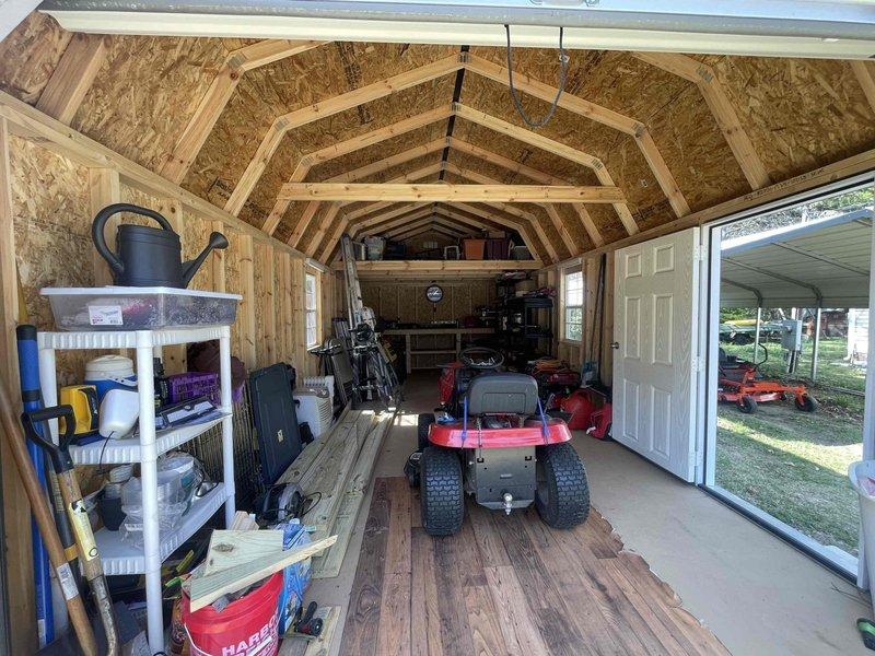 Provided comprehensive electrical service proposal for newly constructed 12x24 storage barn requiring complete power installation from existing service pole. Scope includes trenching from main panel to shed structure, installation of underground conduit and wiring, sub-panel installation inside shed with main grounding system, interior outlet installation and wiring, trencher equipment rental coordination, and permit acquisition for code compliance.